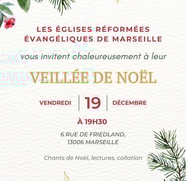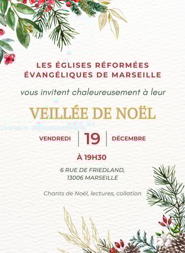 Aussi, une image vous est proposé pour vous inviter à notre veillée de Noël, vendredi prochain soit le 19 décembre 2025 à 19h30, à l'adresse habituelle de notre temple.